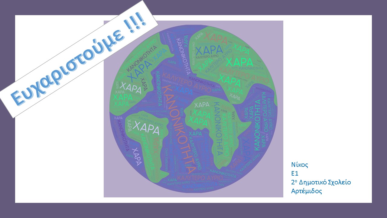 Καλές Γιορτές!!!Ευχαριστούμε!!! Νίκος Ε1 – 2ο Δ.Σ. Αρτέμιδος