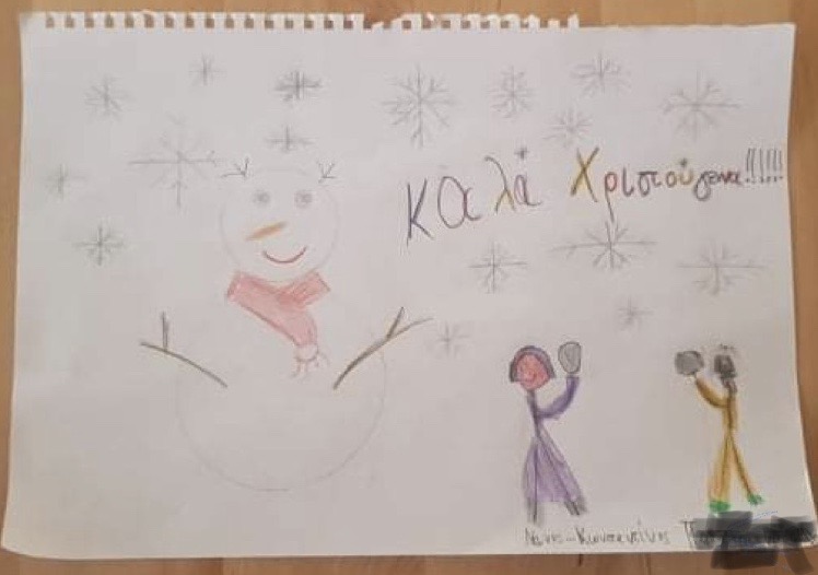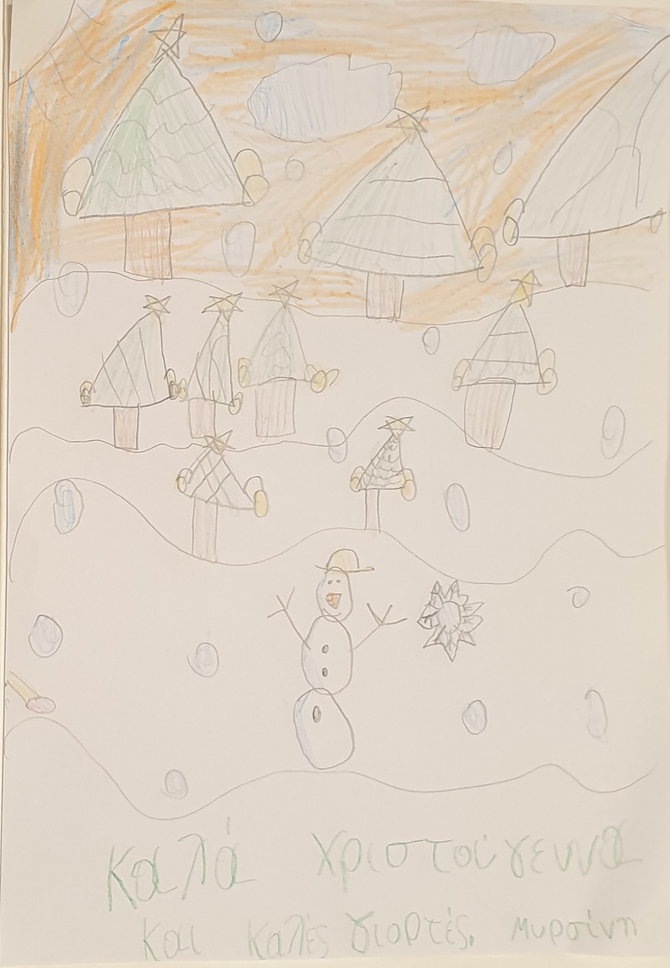 Εύχομαι καλά Χριστούγεννα και ο καινούριος χρόνος να φέρει υγεία και χαρά σε όλους. Με αγάπη Μυρσίνη, Α τάξη 4ου δημοτικού σχολείου Βύρωνα